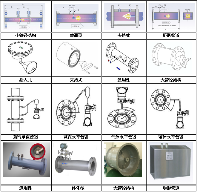 V锥流量计按其结构分为:夹持式、通用型、大管径结构、小管径结构等结构具体形式见下表: